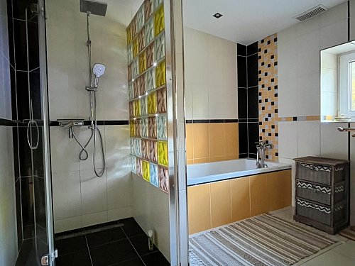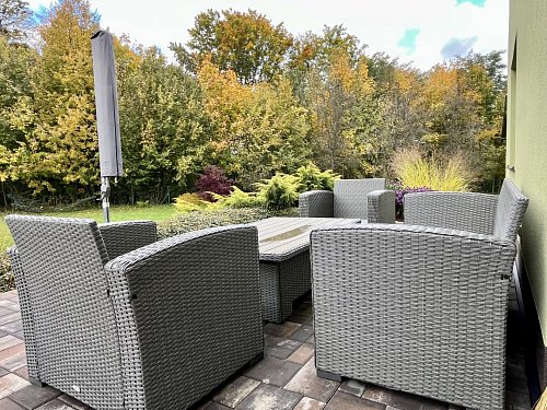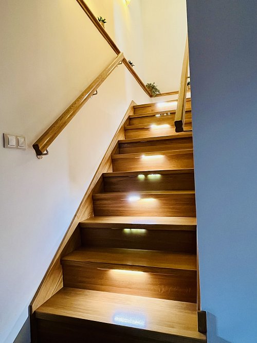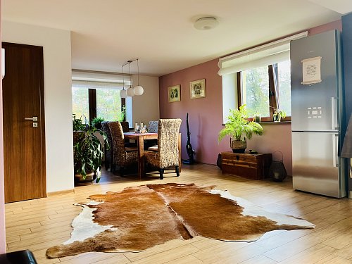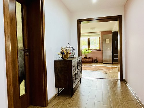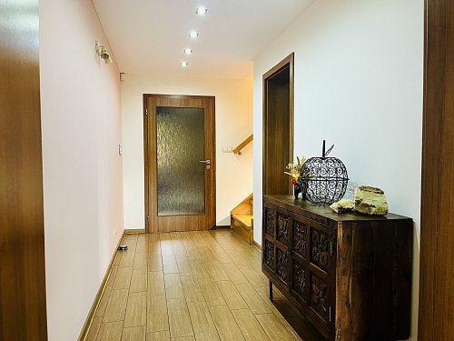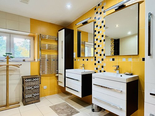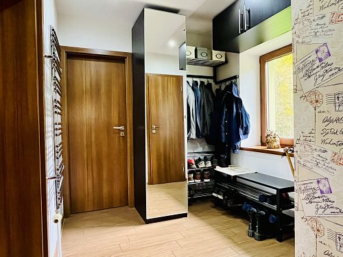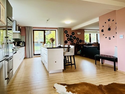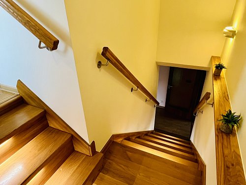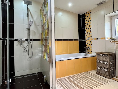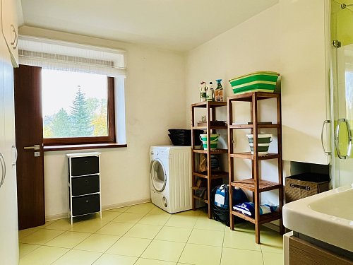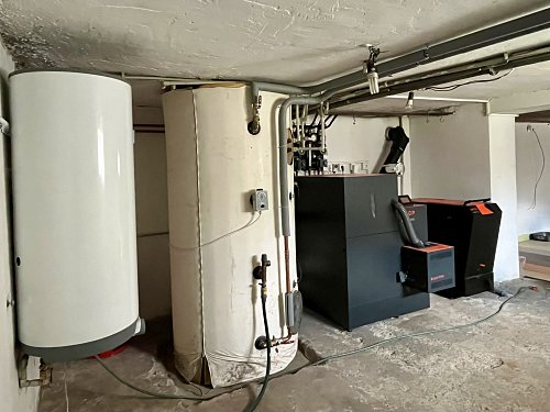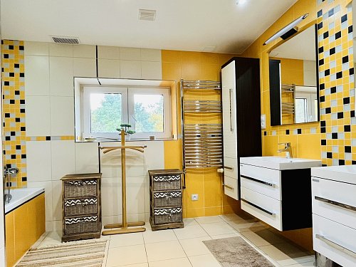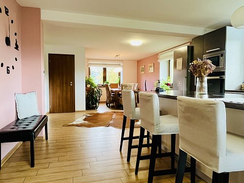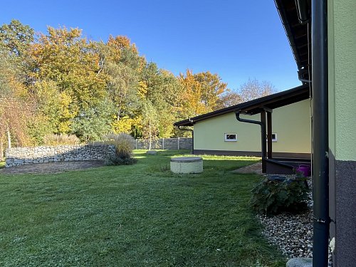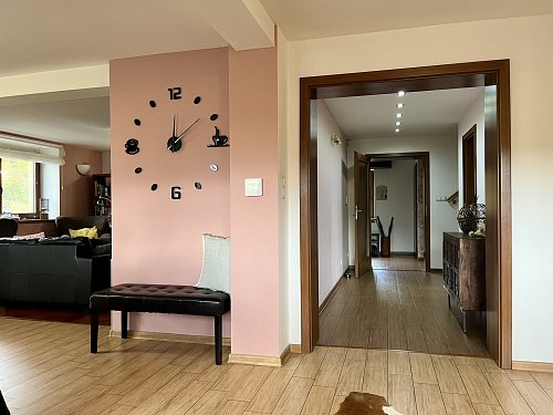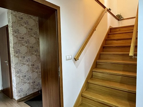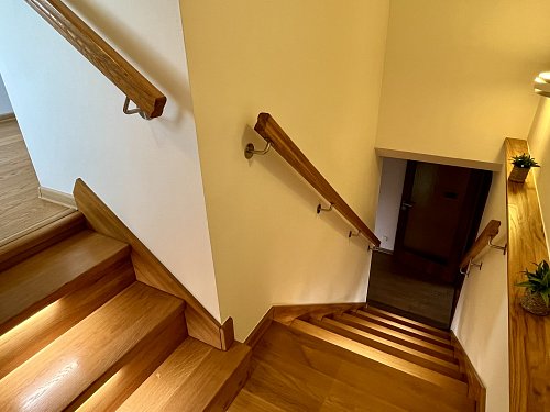 Kompletní rekonstrukce domu proběhla v r. 2011 až 2013 - zateplení domu, podlahové topení v 1NP a částečně i v 2NP s kombinací radiátorů, zateplení střechy vatou 35cm, krytina na střeše domu plech falcovaný PREFA, garáž pro dvě auta, odvodňovací drenáže kolem celého domu a proto se dům může pyšnit suchým klepem.