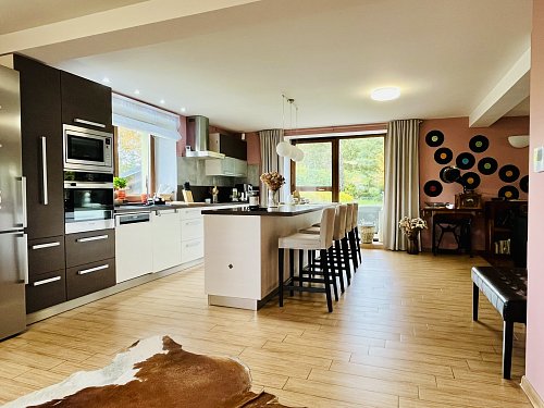 Dvoupodlažní, celopodsklepený dům o dispozici 5+KK s velkou garáží pro dvě auta/dodávky a velkou udržovanou zahradou se nachází v lukrativní části Třinec - Lyžbice. Kdo hledáte klid oceníte polohu domu na polosamotě a přesto v bezprostřední blízkosti centra města s veškerou občanskou vybaveností.