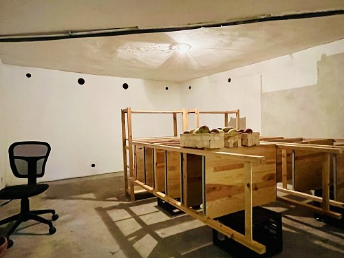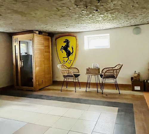 1PP se nacházejí čtyři místnosti, z nichž jedna je vybavena kotlem, 1000l rozvodnou tepla a 200l bojlerem. Další místnost obsahuje infra saunu pro dvě osoby, třetí místnost slouží jako čistička vody s umyvadlem a poslední místnost je určena pro úschovu zeleniny a nářadí.