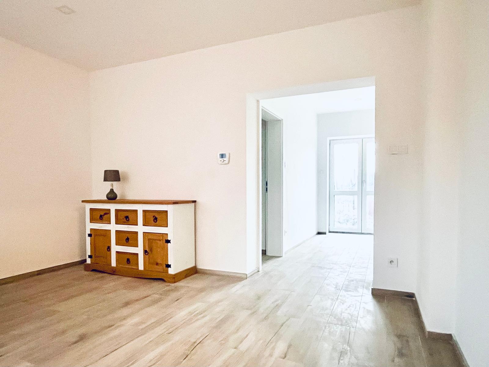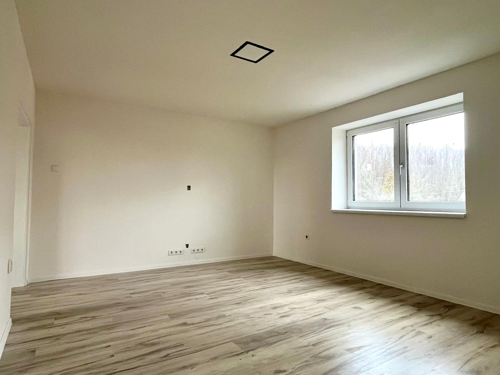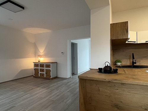 1. NP zádveří, WC, schodiště, chodba, koupelna s WC, obývací pokoj a kuchyň (65 m²)